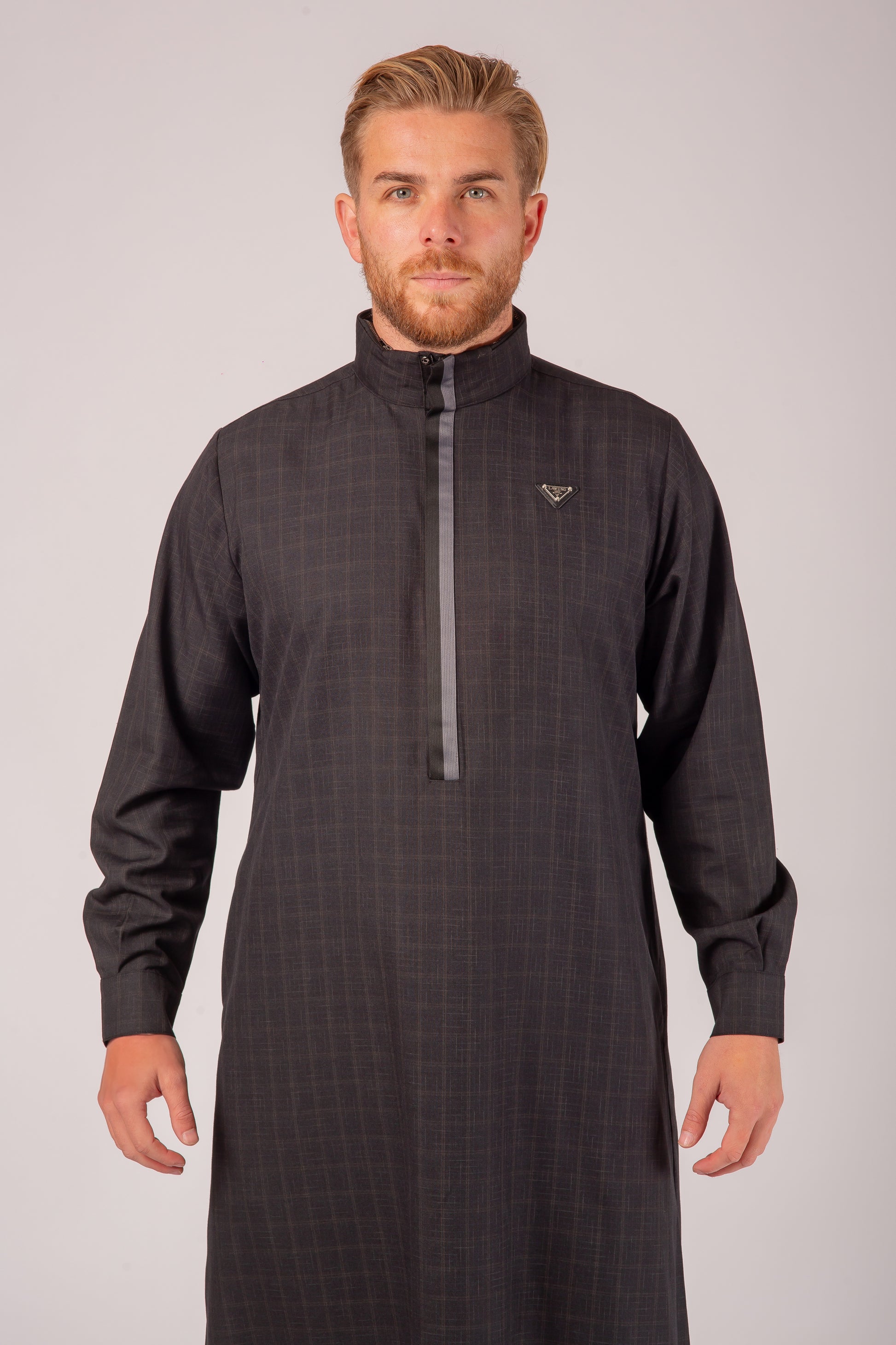 Introducing the LWR25333 — a sleek and modern Arabian garment in a sophisticated blend of black and grey. The deep black base is complemented by subtle grey accents, creating a striking contrast that is both contemporary and timeless.