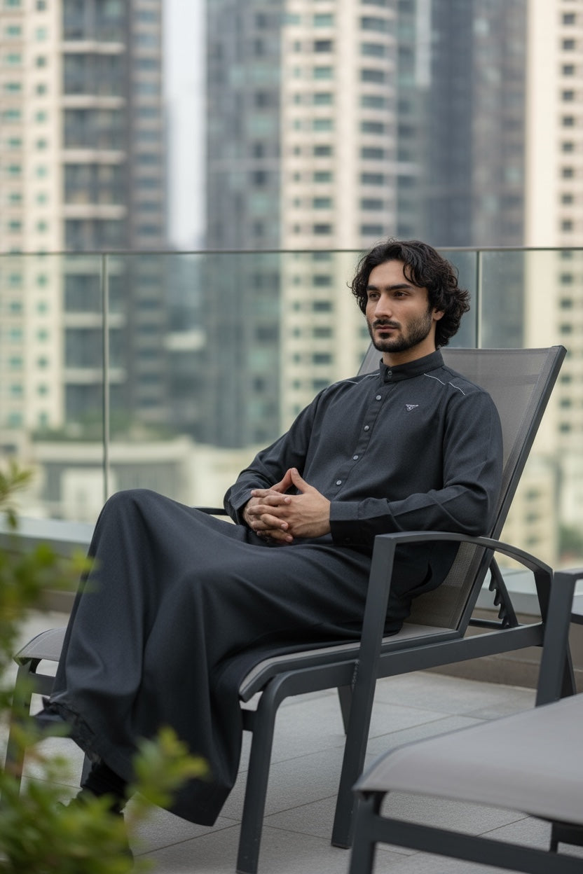 Crafted for the modern gentleman, this premium grey thobe blends timeless tradition with refined contemporary tailoring. Designed with a structured silhouette and a tailored fit, it delivers effortless elegance suitable for both formal occasions and everyday wear.